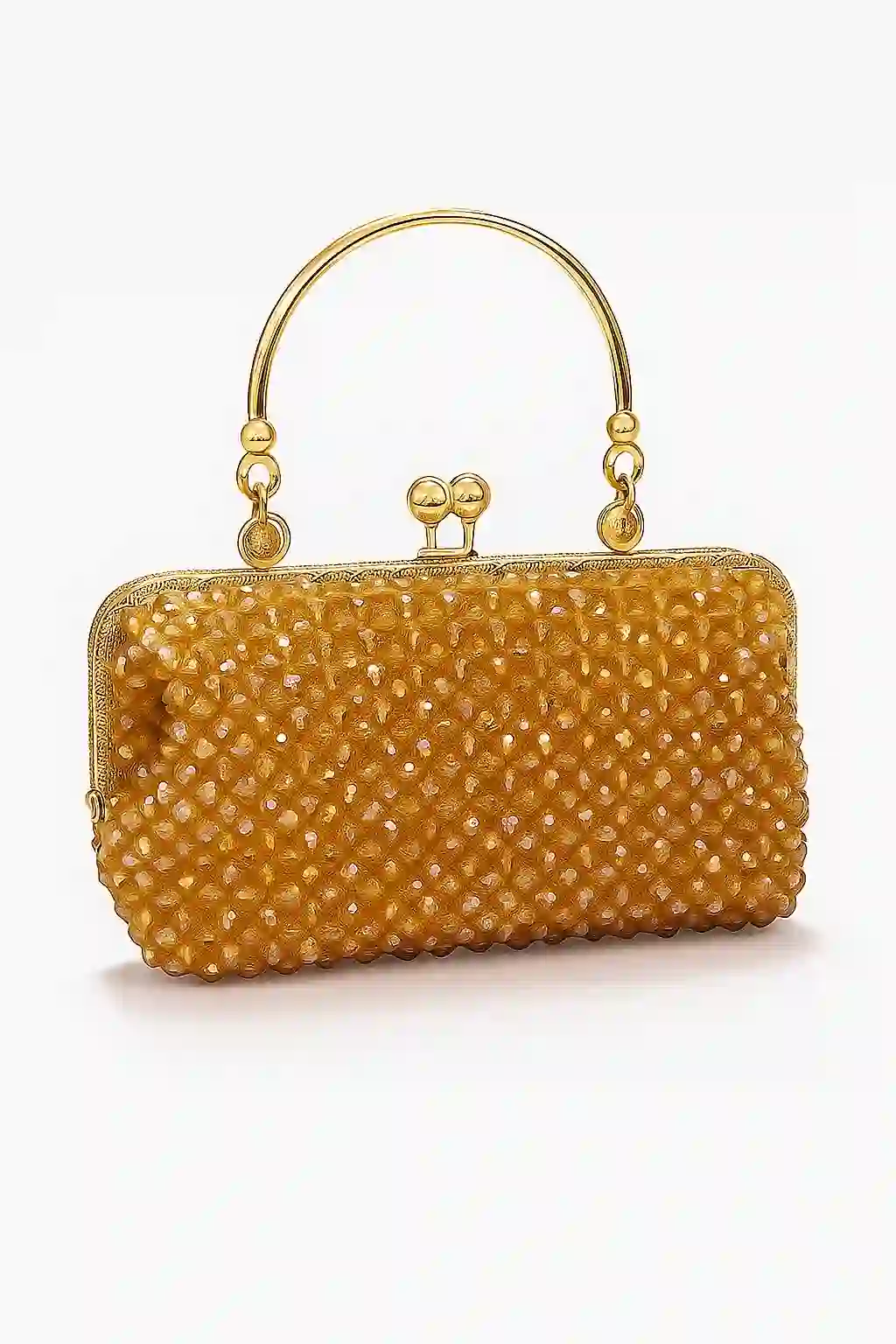 We designed the Champagne Crystal Clutch as a glamorous piece for formal occasions. Made with sparkling champaign-colored crystals, it shines beautifully under the light and adds instant elegance to any outfit. The structured body pairs with a smooth interior to keep your essentials safe while maintaining a classy look.