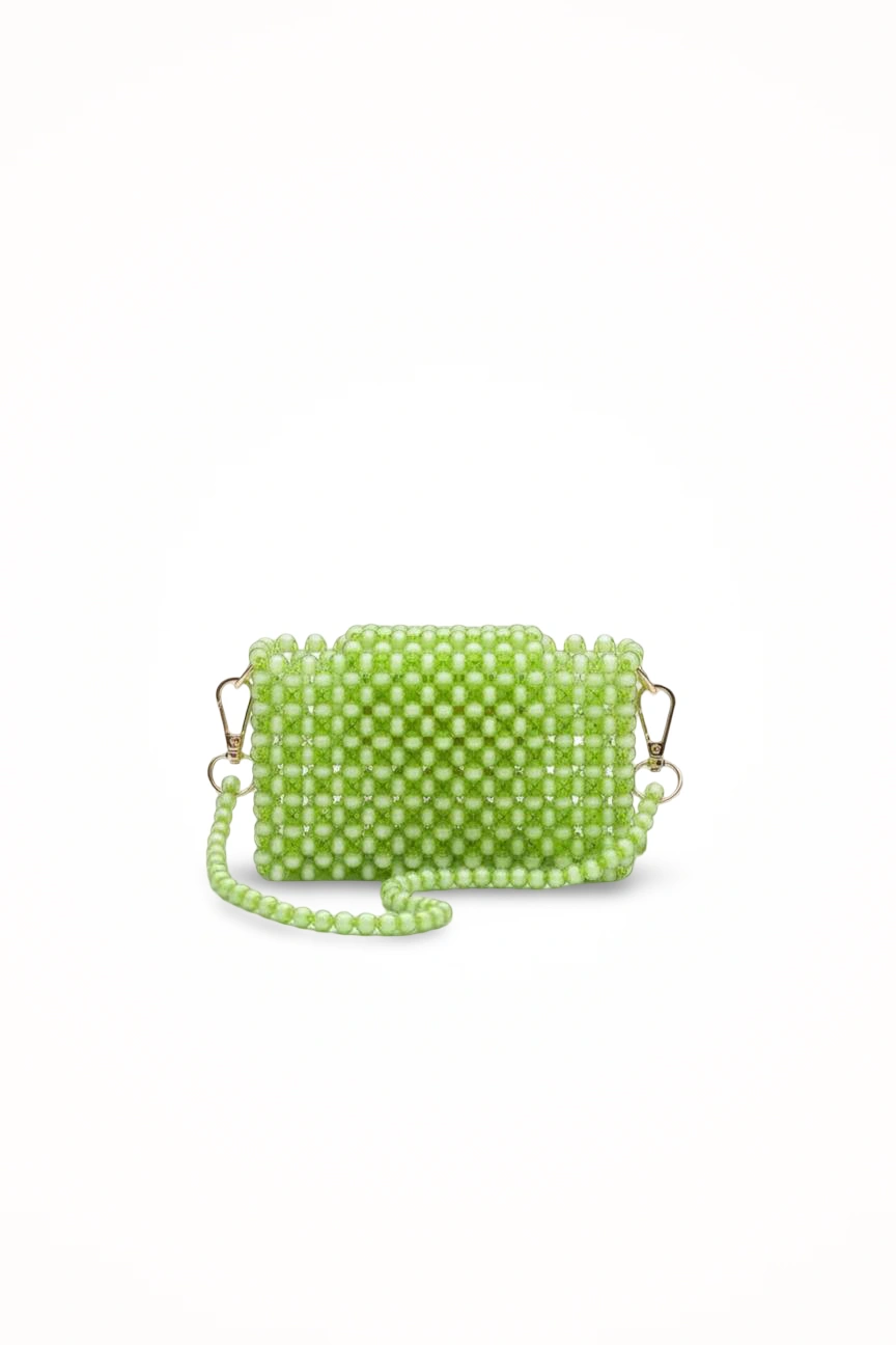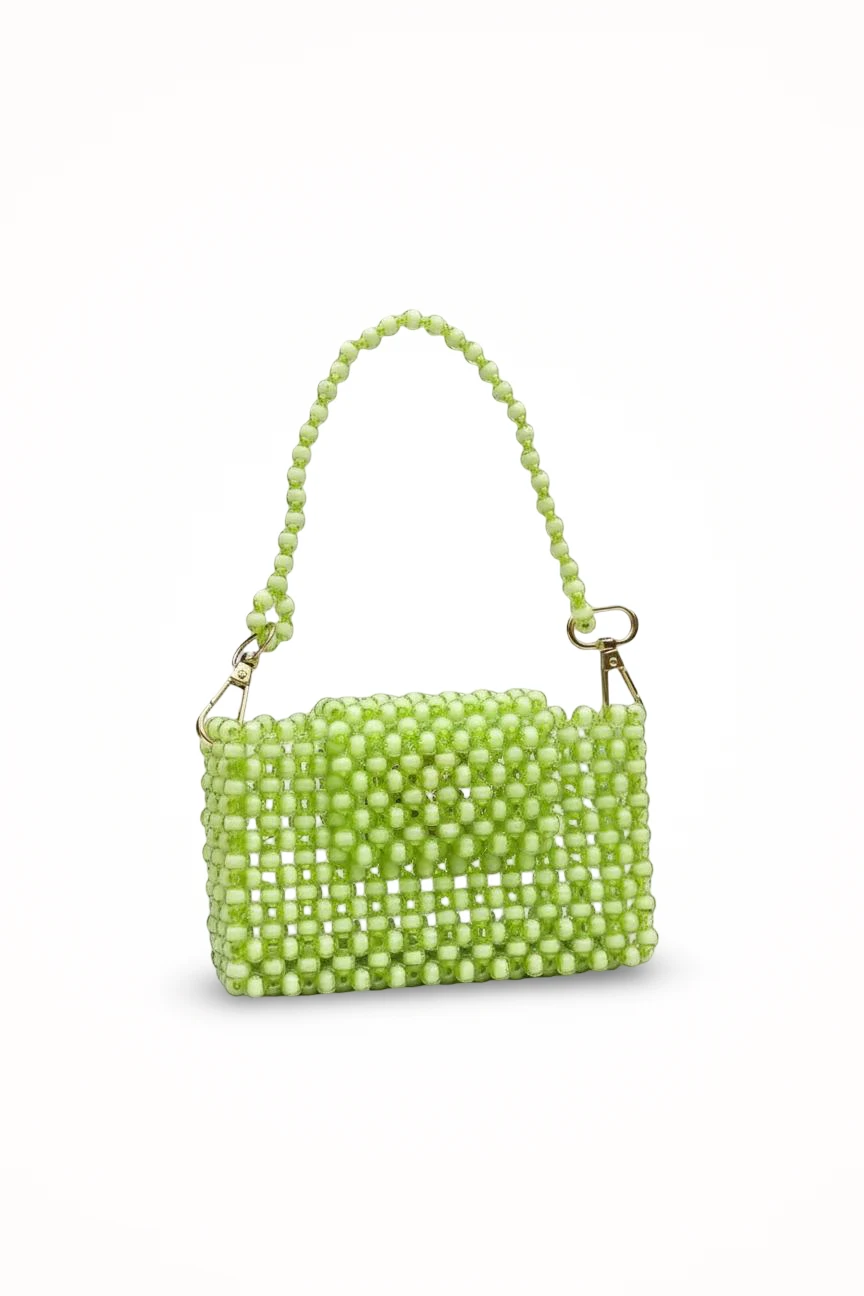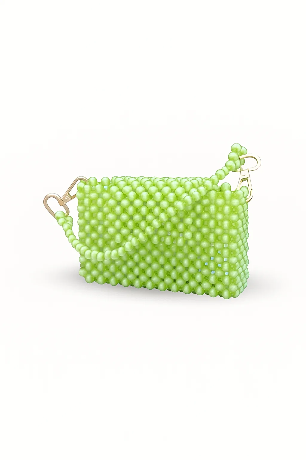 No. The Lime Beaded Bag uses high-quality resin beads that stay bright for a long time. Avoid harsh chemicals and rough surfaces to keep the shine intact.